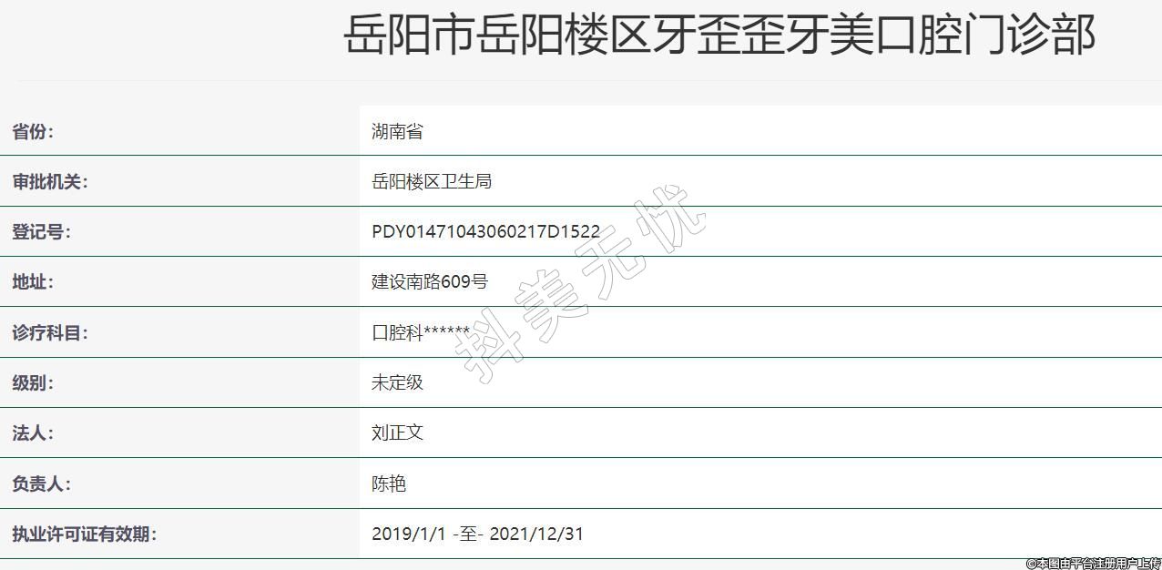 岳陽市岳陽樓區(qū)牙歪歪牙美口腔門診部