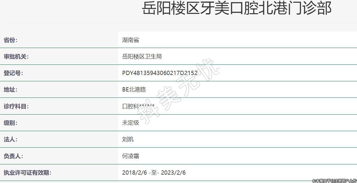 岳陽(yáng)樓區(qū)牙美口腔北港門(mén)診部