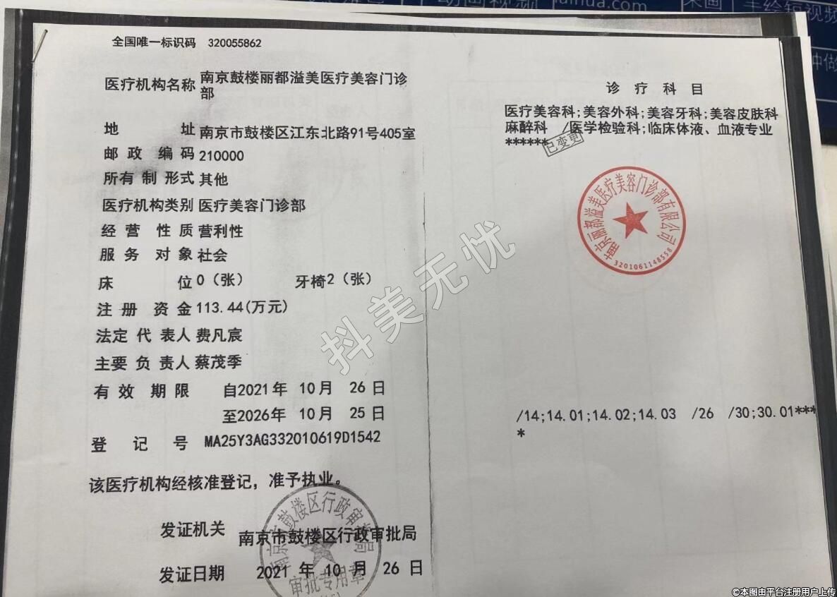 醫(yī)療機構名稱:南京鼓樓麗都溢美醫(yī)療美容門診部