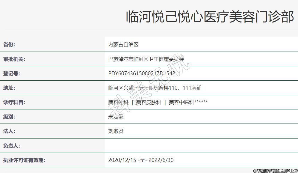 臨河悅己悅心醫(yī)療美容2020-09-15成立,地址:臨河區(qū)興盛國際一期綜合樓110、111商鋪,診療科目:美容外科 | 美容皮膚科 | 美容中醫(yī)科******