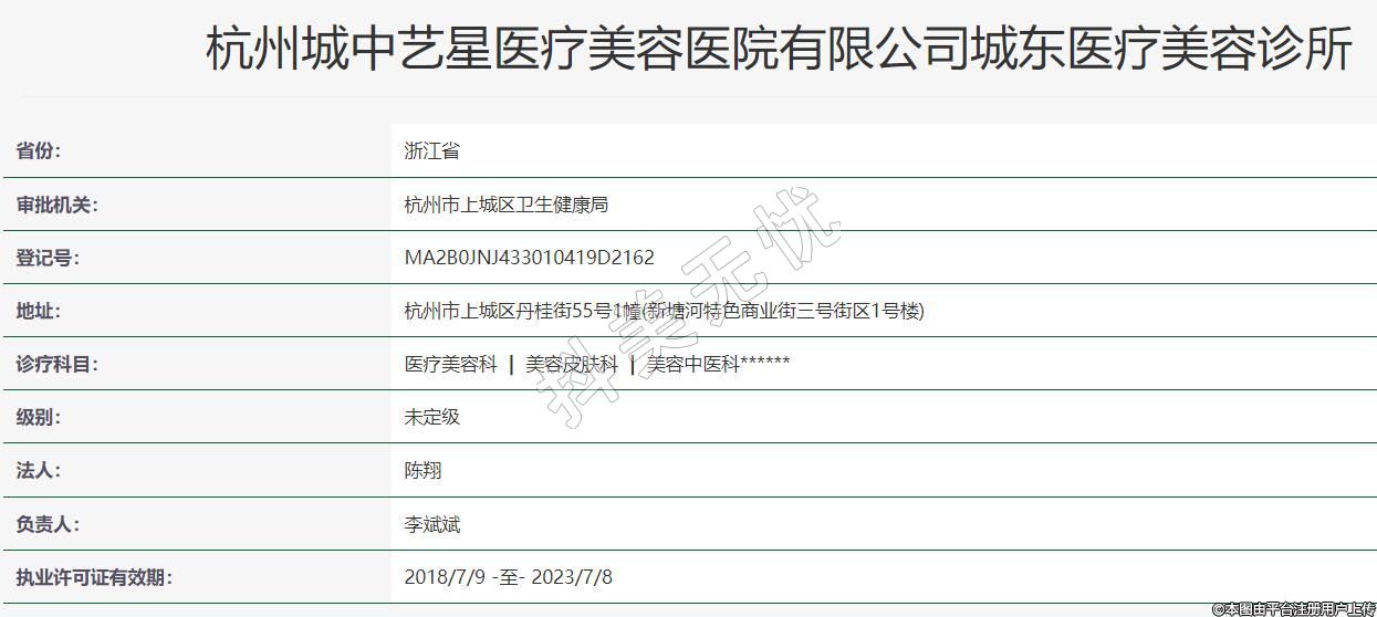 杭州城中藝星醫(yī)療美容醫(yī)院有限公司城東醫(yī)療美容診所