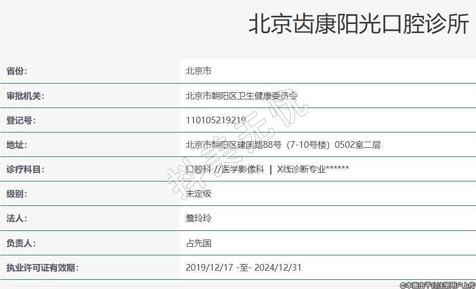 北京齒康陽光口腔2010-03-23成立,地址:北京市朝陽區(qū)建國路88號(7-10號樓)0502室二層,診療科目:口腔科 //醫(yī)學影像科 | X線診斷專業(yè)******