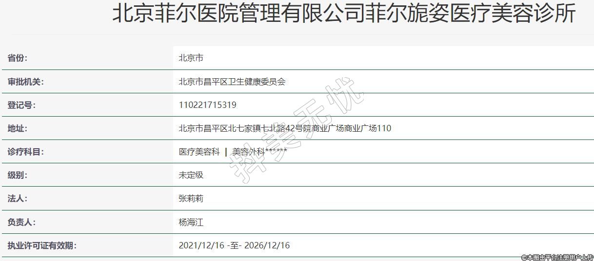 北京菲爾醫(yī)院管理有限公司菲爾旎姿醫(yī)療美容診所