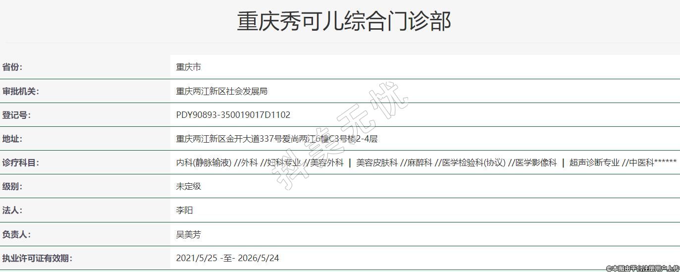 診療科目:內科(靜脈輸液) //外科 //婦科專業(yè) //美容外科 | 美容皮膚科 //麻醉科 //醫(yī)學檢驗科(協(xié)議) //醫(yī)學影像科 | 超聲診斷專業(yè) //中醫(yī)科******