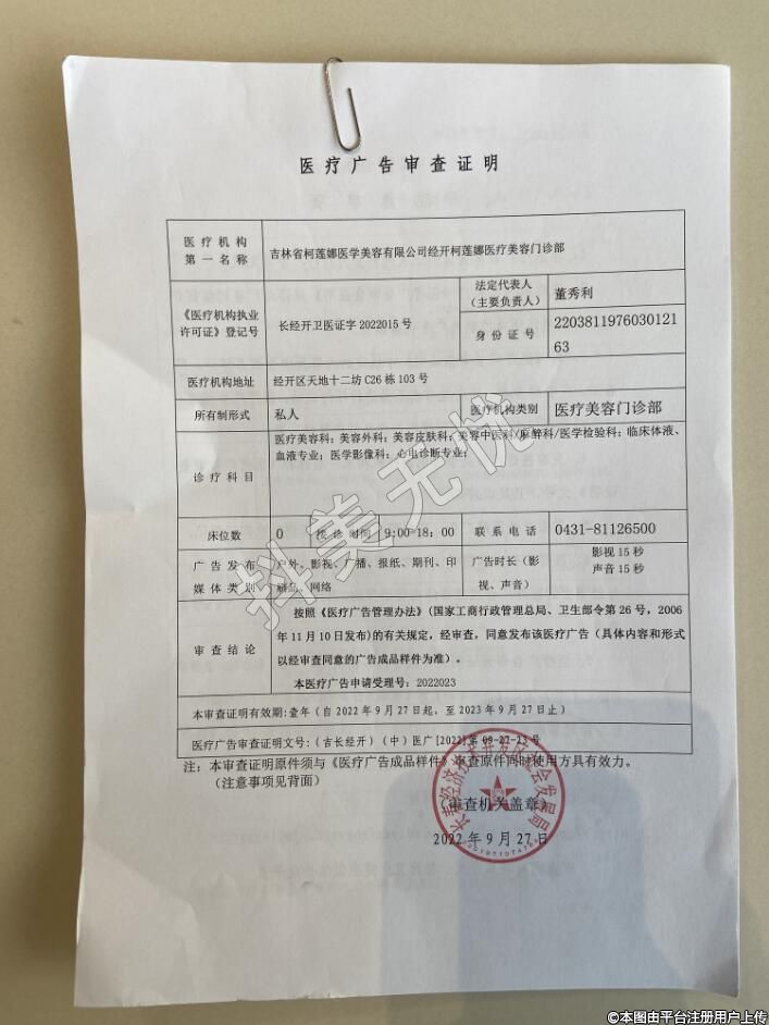 吉林省柯蓮娜醫(yī)學(xué)美容有限公司經(jīng)開柯蓮娜醫(yī)療美容門診部