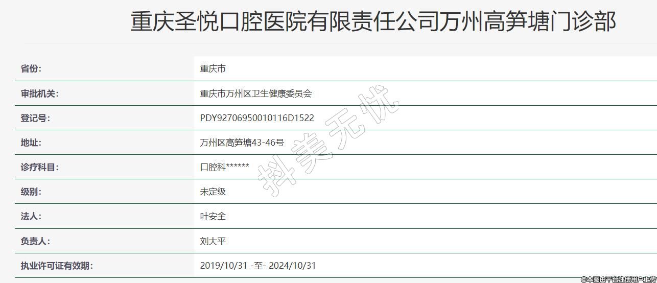 重慶圣悅口腔醫(yī)院有限責(zé)任公司萬州高筍塘門診部