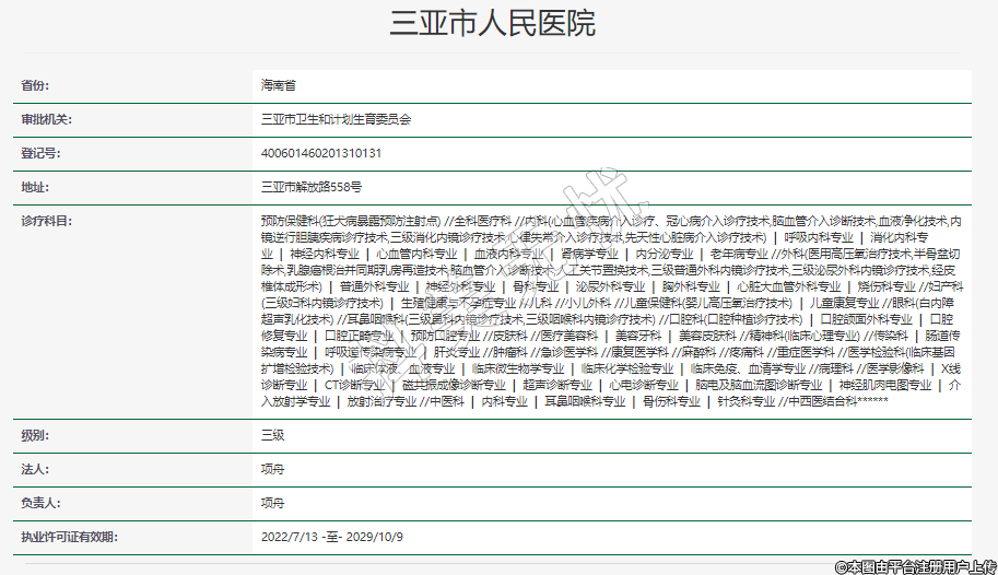 審批機關:三亞市衛(wèi)生和計劃生育委員會