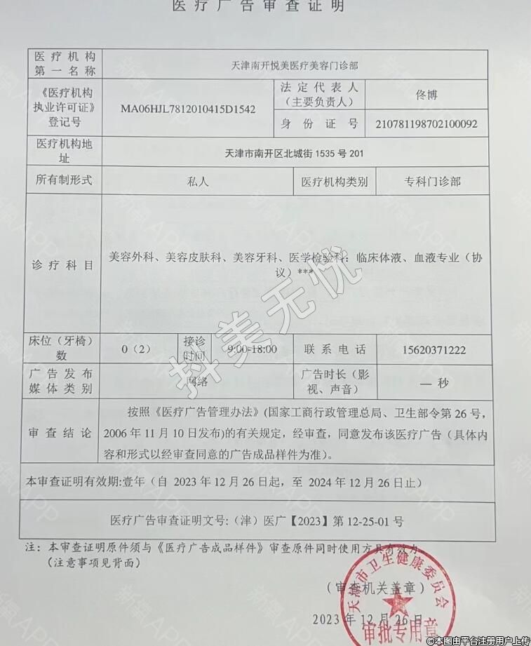 機構(gòu)名稱:天津南開悅美醫(yī)療美容門診部