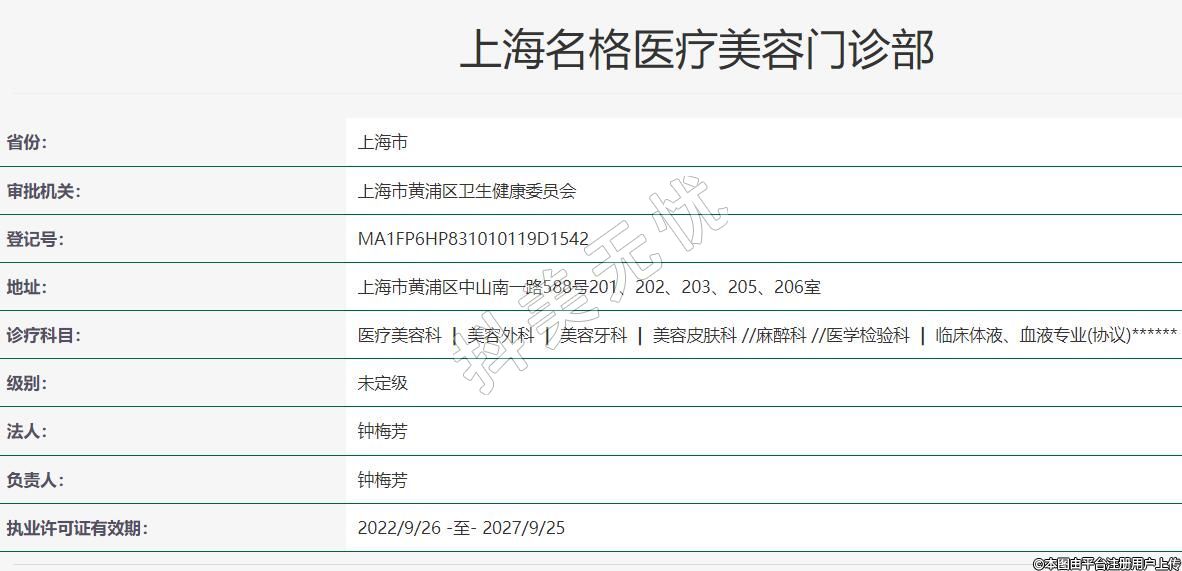 審批機關:上海市黃浦區(qū)衛(wèi)生健康委員會