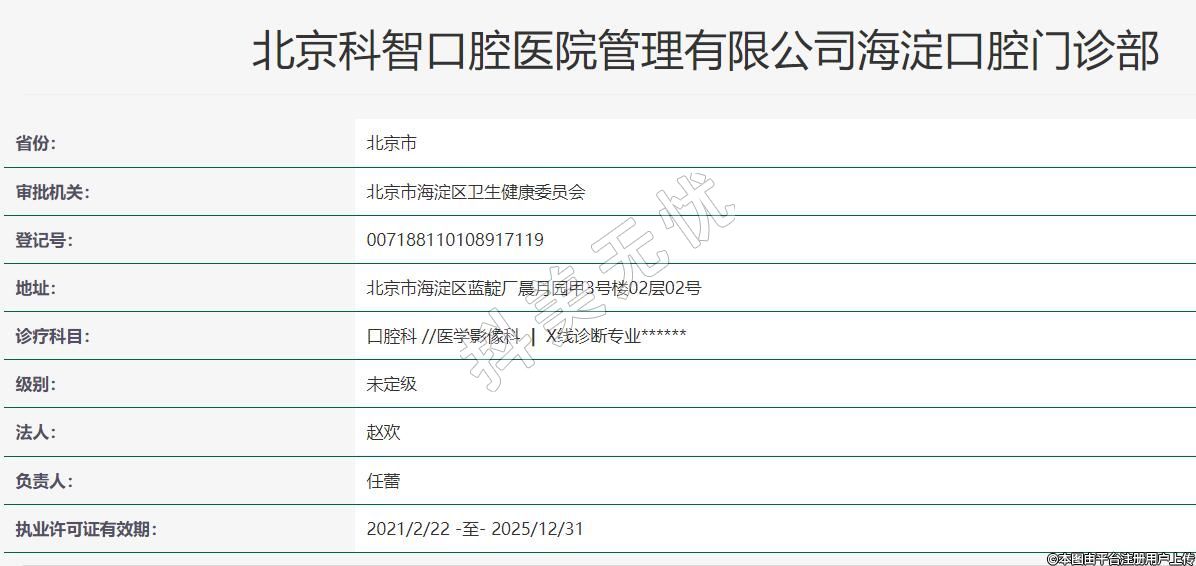北京科智口腔醫(yī)院管理有限公司海淀口腔門(mén)診部