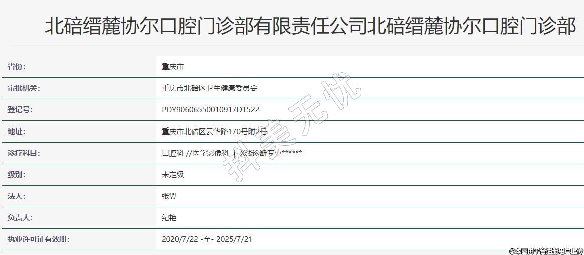 北碚縉麓協(xié)爾口腔門診部有限責(zé)任公司北碚縉麓協(xié)爾口腔門診部