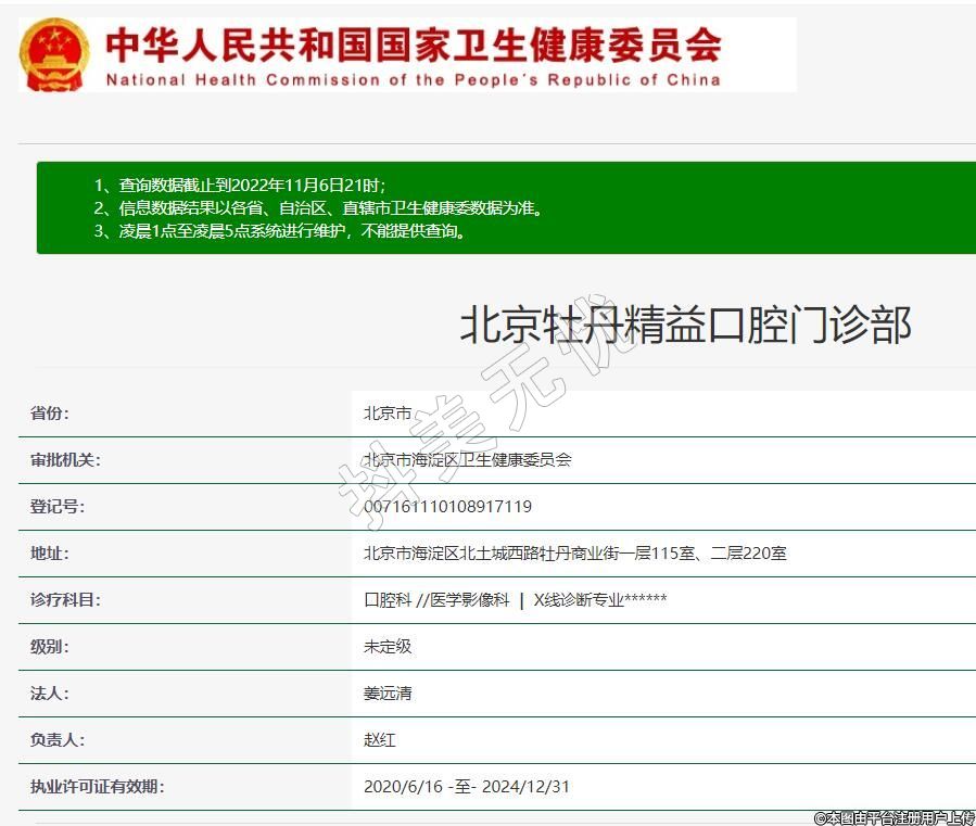 北京牡丹精益口腔2020-01-19成立,地址:北京市海淀區(qū)學(xué)府樹家園四區(qū)1號樓1層1-1,診療科目:口腔科 //醫(yī)學(xué)影像科 | X線診斷專業(yè)******
