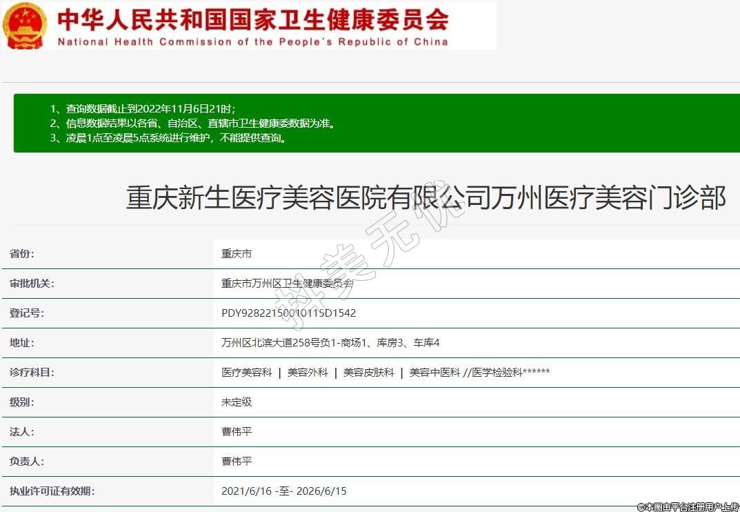 重慶新生醫(yī)療美容醫(yī)院有限公司萬州醫(yī)療美容門診部