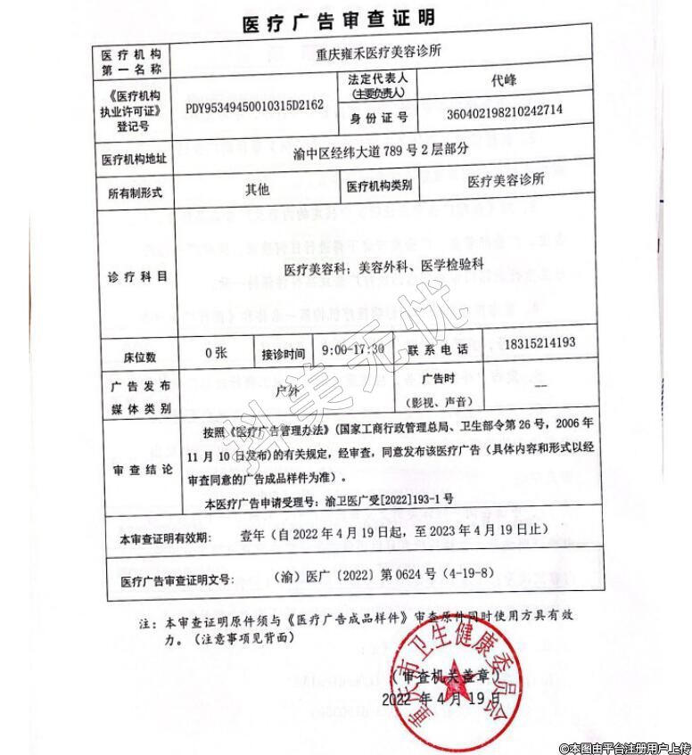 機構(gòu)名稱:重慶雍禾醫(yī)療美容診所
