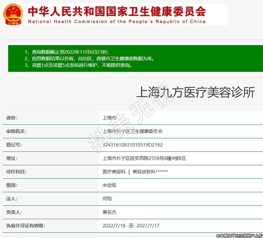 上海九方醫(yī)療美容2014-12-31成立,地址:上海市長寧區(qū)延安西路2558號8幢4樓B區(qū),診療科目:醫(yī)療美容科 | 美容皮膚科******