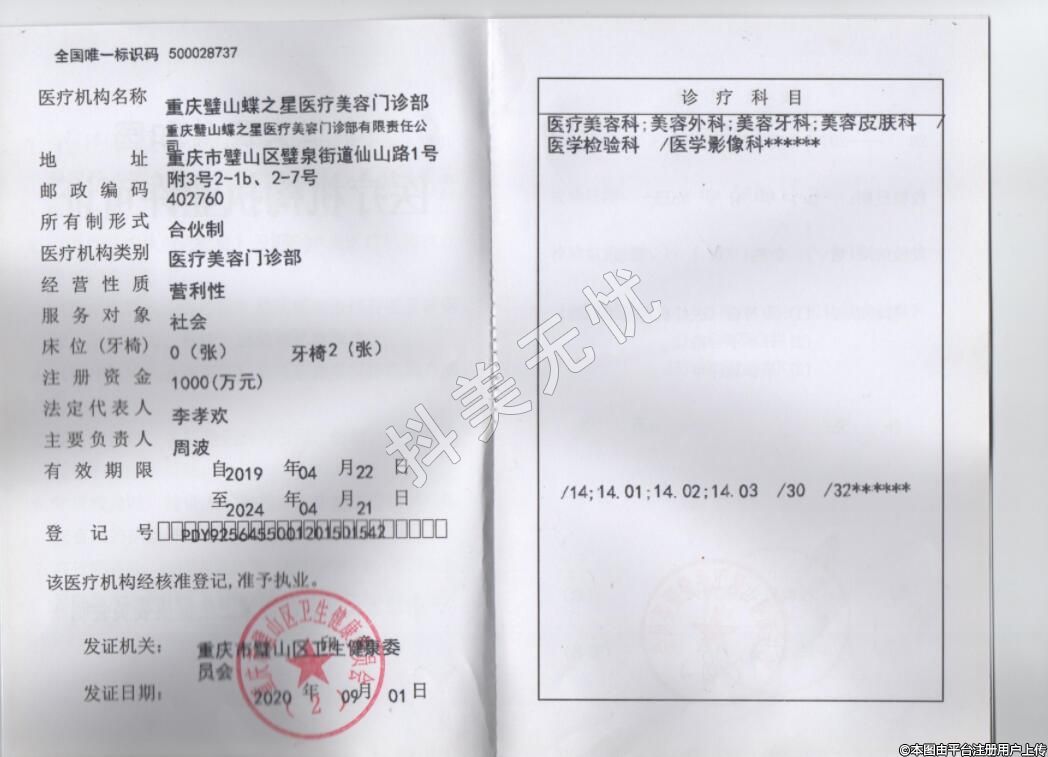 醫(yī)療機(jī)構(gòu)名稱(chēng):重慶璧山蝶之星醫(yī)療美容門(mén)診部