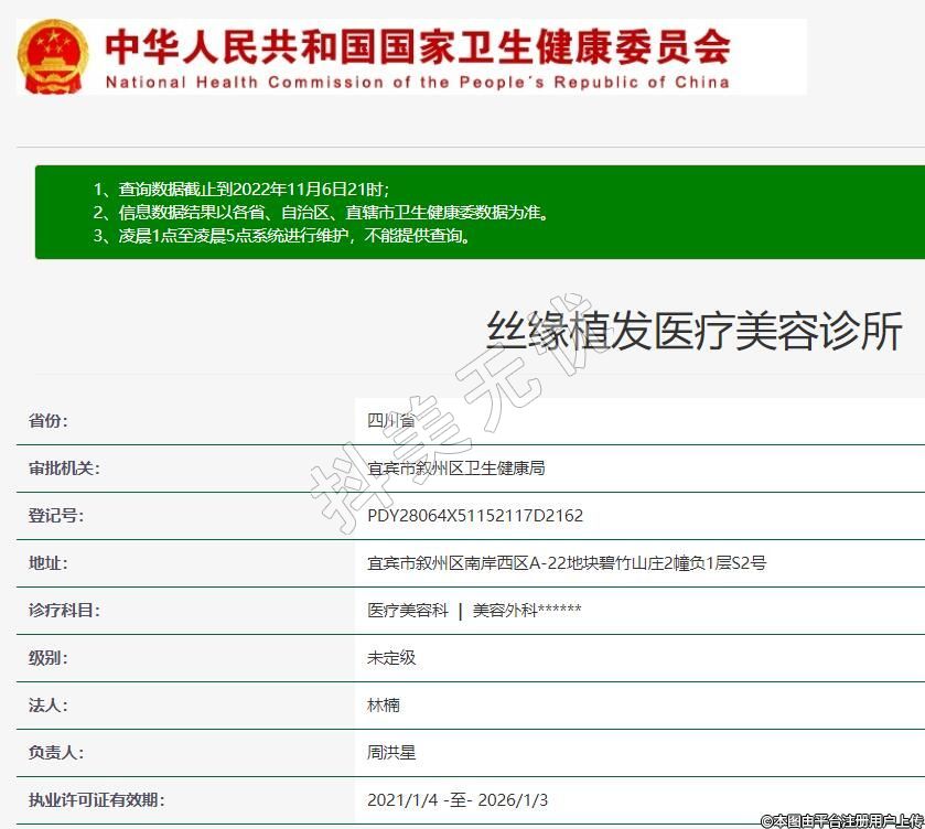 宜賓絲緣植發(fā)醫(yī)療美容2020-11-03成立,地址:宜賓市敘州區(qū)南岸西區(qū)A-22地塊碧竹山莊2幢負1層S2號,診療科目:醫(yī)療美容科 | 美容外科******