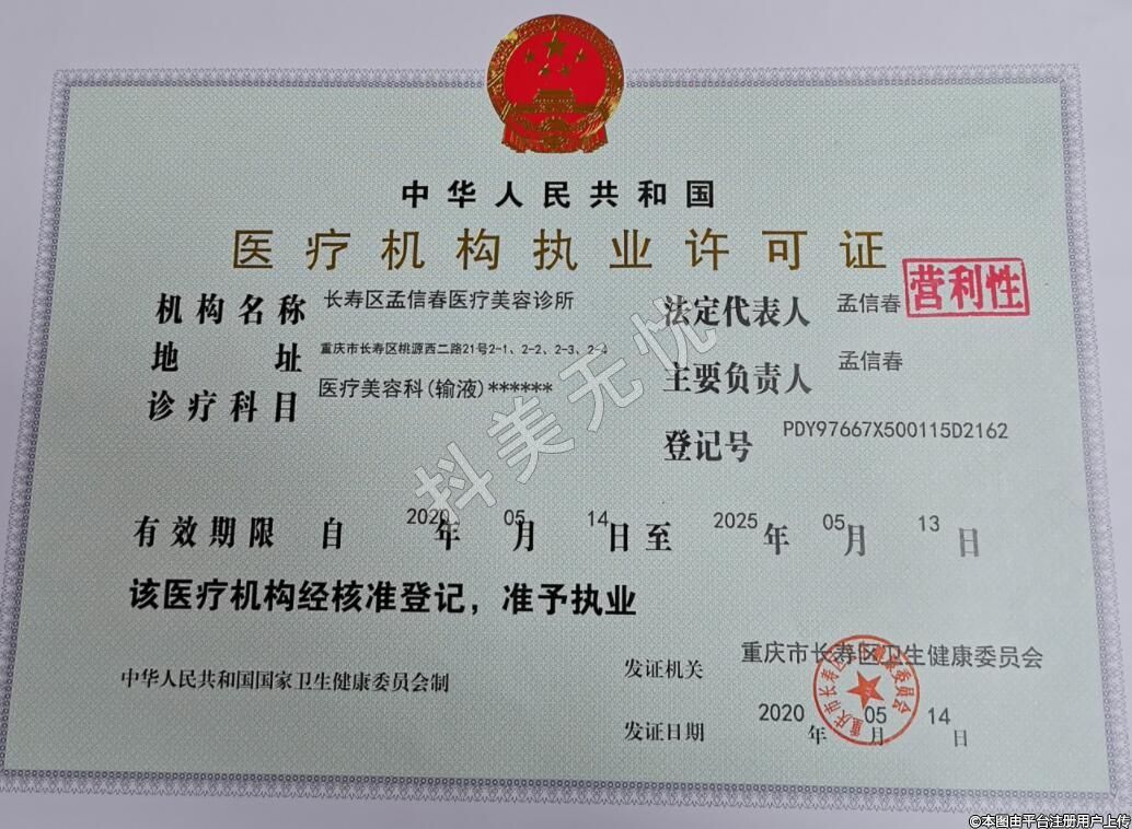 機(jī)構(gòu)名稱(chēng):長(zhǎng)壽區(qū)孟信春醫(yī)療美容診所