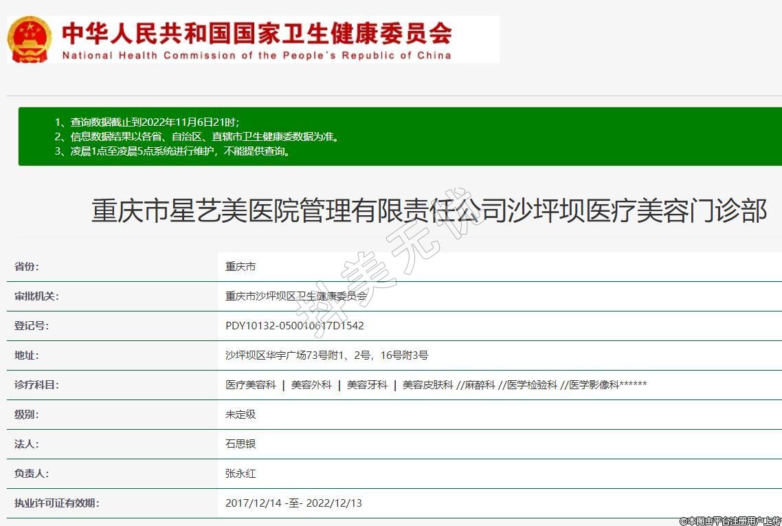 重慶市星藝美醫(yī)院管理有限責(zé)任公司沙坪壩醫(yī)療美容門診部