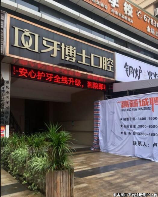 重慶牙博士口腔(渝北店)2018-04-03成立,地址:重慶市渝北區(qū)雙湖路1號水木天地2-5棟3層1號,診療科目:口腔科 | 口腔頜面醫(yī)學(xué)影像專業(yè) //醫(yī)學(xué)檢驗科******
