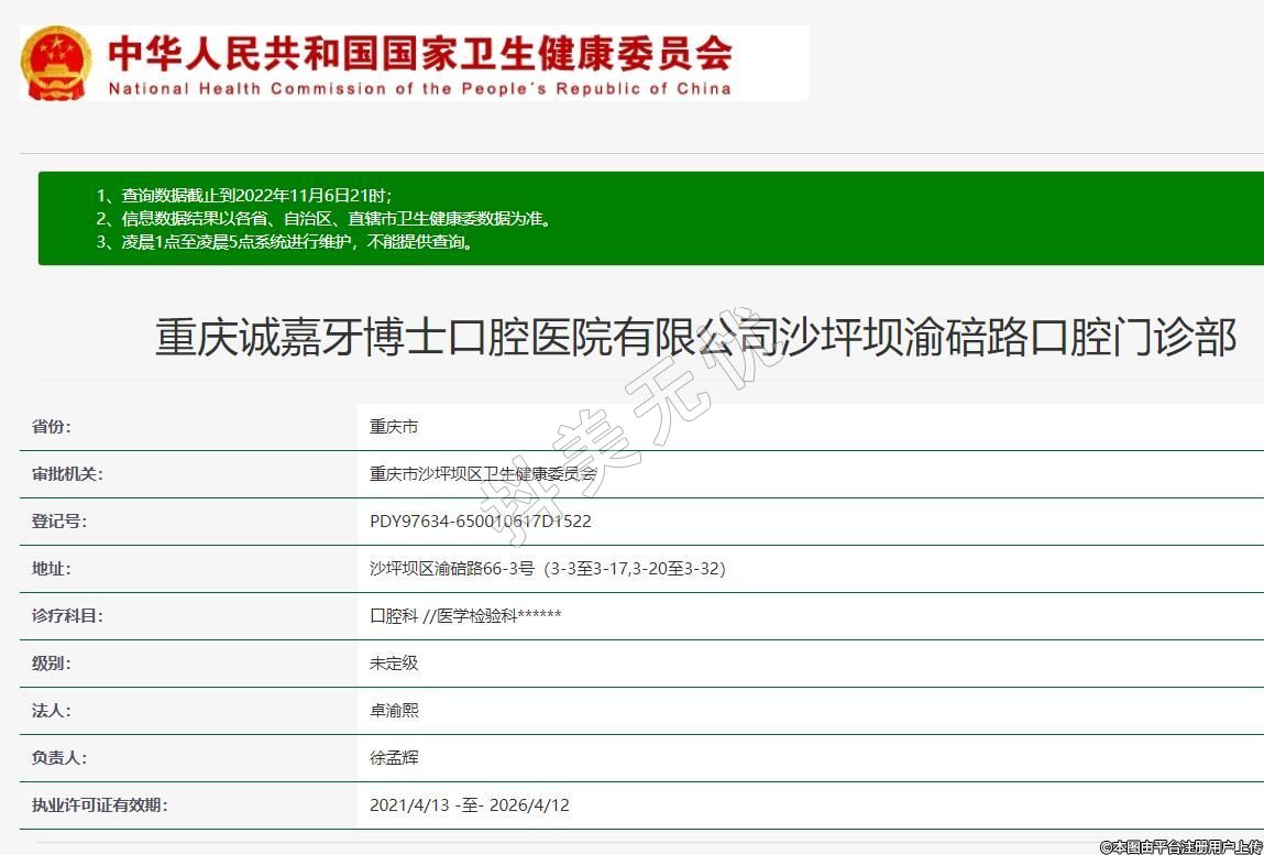 重慶誠嘉牙博士口腔醫(yī)院有限公司沙坪壩渝碚路口腔門診部