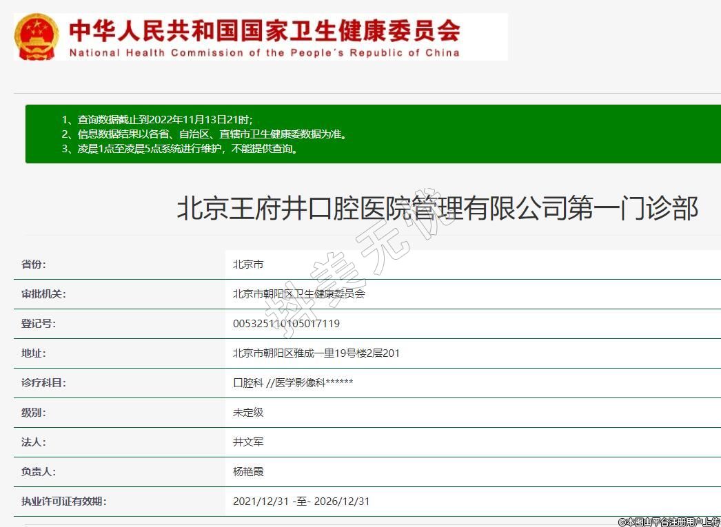 北京王府井口腔醫(yī)院管理有限公司第一門診部
