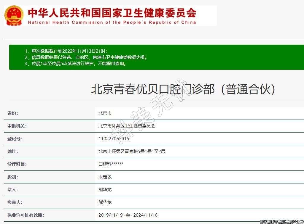 北京青春優(yōu)貝口腔門診部(普通合伙)