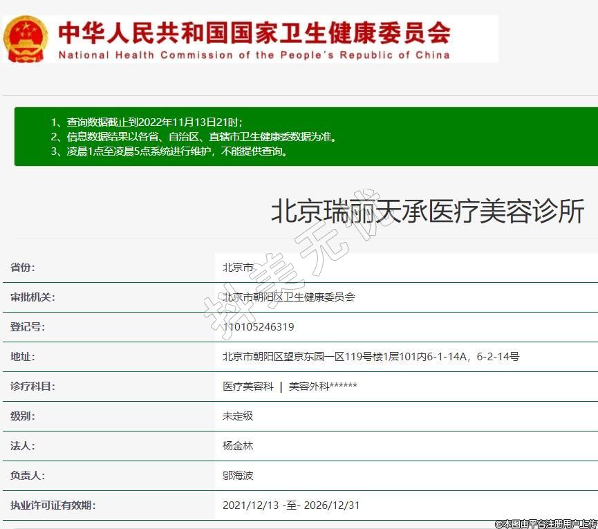 北京瑞麗天承醫(yī)療美容診所是由北京市衛(wèi)健部門批準(zhǔn)成立,專注面部提升的機構(gòu),坐落于北京繁華的商業(yè)核心地段:望京SOHO寶星華庭。機構(gòu)下設(shè)面部提升失敗修復(fù)中心、面部微雕中心、高難度眼整形研究中心,為每一位顧客提供專業(yè)、安全的醫(yī)療整形服務(wù)。