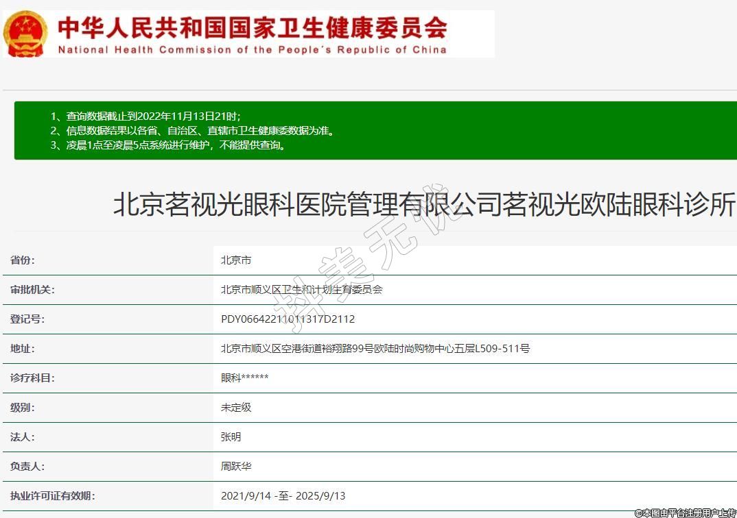 北京茗視光眼科醫(yī)院管理有限公司茗視光歐陸眼科診所
