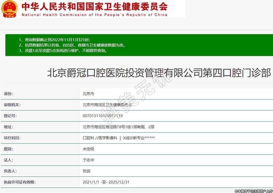 北京爵冠口腔醫(yī)院投資管理有限公司第四口腔門(mén)診部
