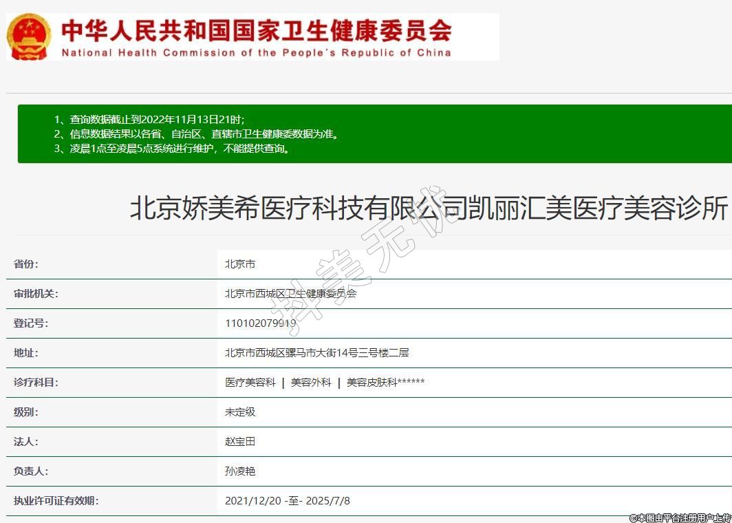 北京嬌美希醫(yī)療科技有限公司凱麗匯美醫(yī)療美容診所
