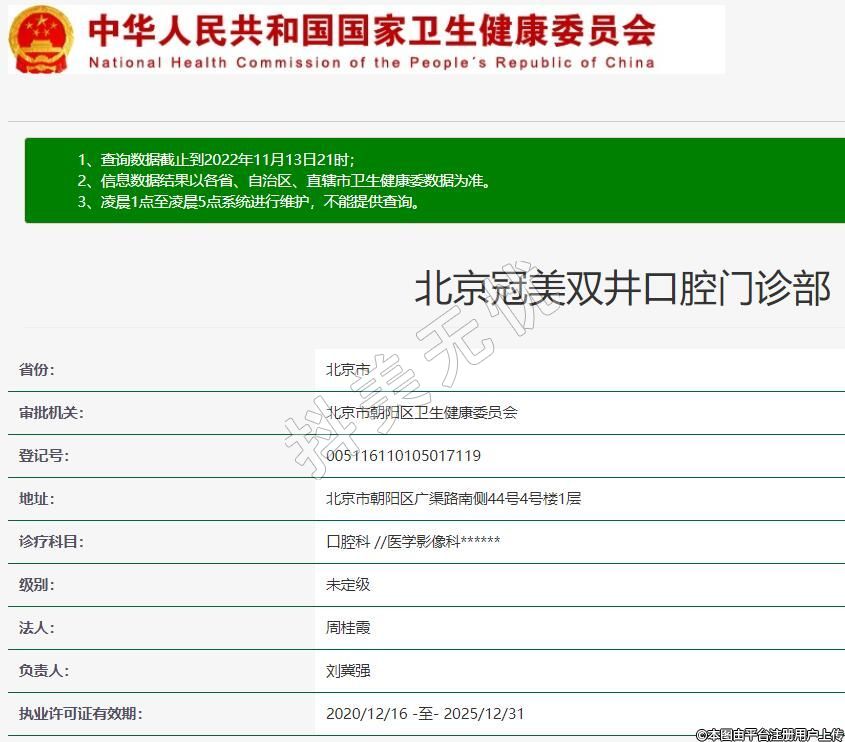 北京冠美雙井口腔2010-02-08成立,地址:北京市朝陽區(qū)廣渠路南側(cè)44號4號樓1層,診療科目:口腔科 //醫(yī)學(xué)影像科******