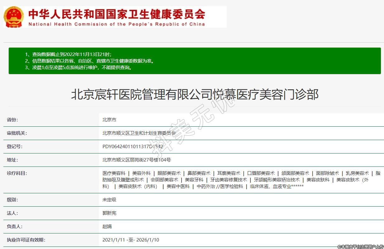 北京宸軒醫(yī)院管理有限公司悅慕醫(yī)療美容門(mén)診部
