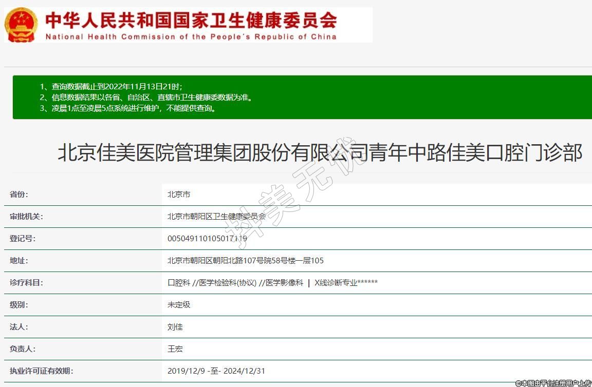 北京佳美醫(yī)院管理集團(tuán)股份有限公司青年中路佳美口腔門診部
