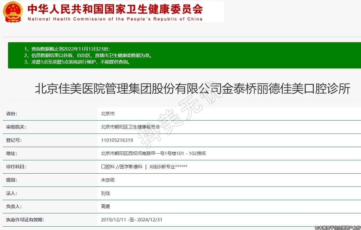 北京佳美醫(yī)院管理集團(tuán)股份有限公司金泰橋麗德佳美口腔診所
