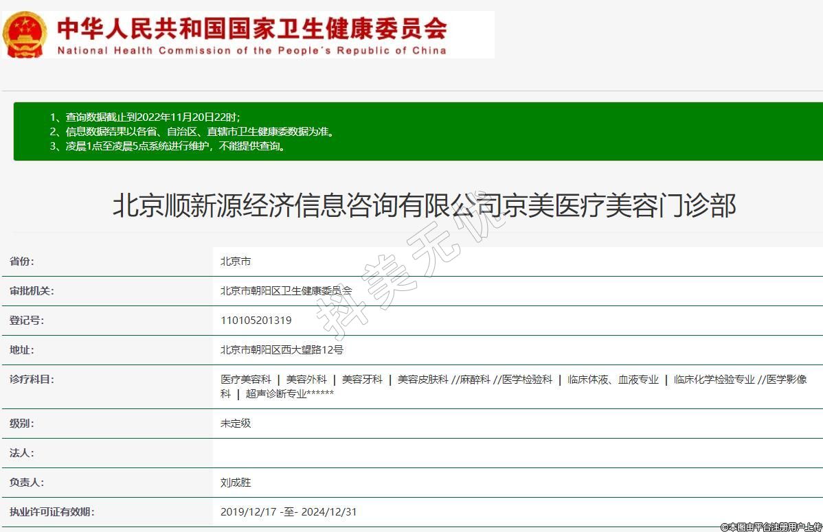 北京順新源經(jīng)濟(jì)信息咨詢有限公司京美醫(yī)療美容門診部