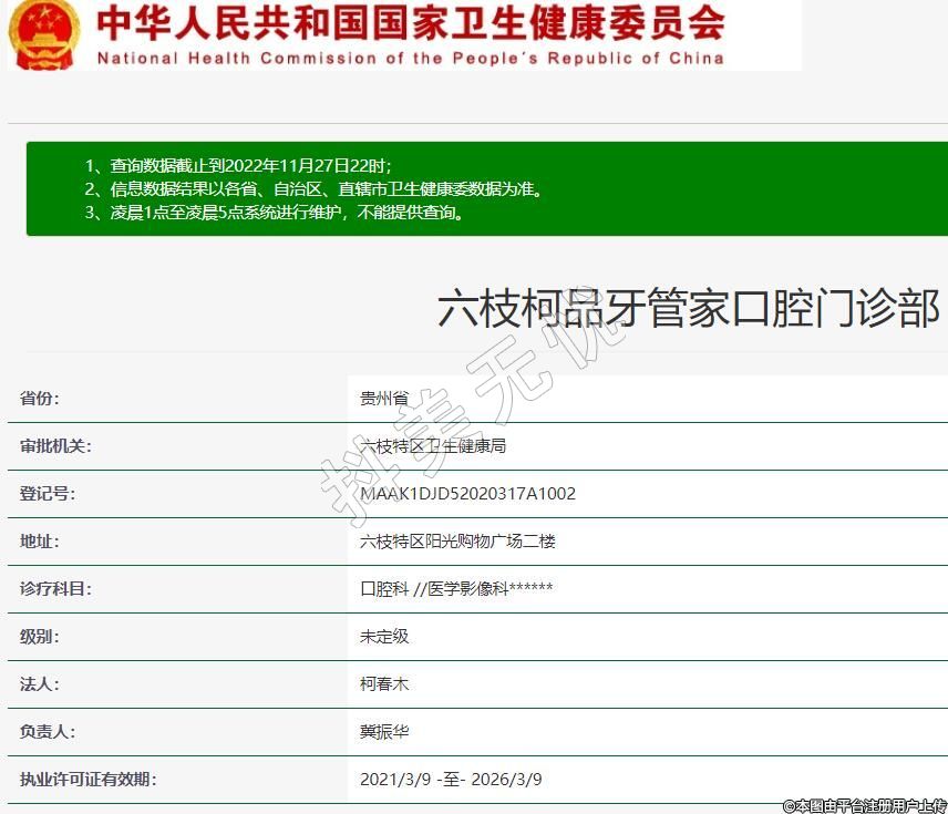 六枝柯品牙管家口腔2020-10-21成立,地址:六枝特區(qū)陽光購物廣場二樓,診療科目:口腔科 //醫(yī)學(xué)影像科******