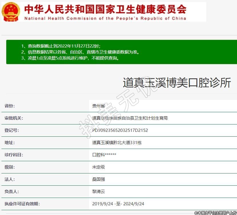 道真玉溪博美口腔2019-10-14成立,地址:道真玉溪鎮(zhèn)黔北大道331棟,診療科目:口腔科******