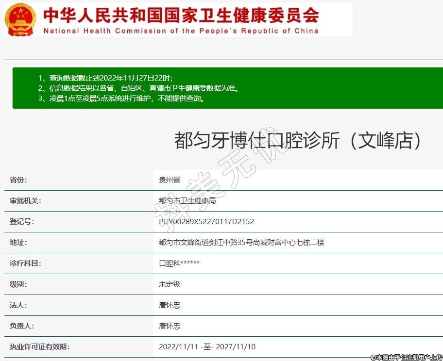 執(zhí)業(yè)許可證有效期:2022/11/11 -至- 2027/11/10