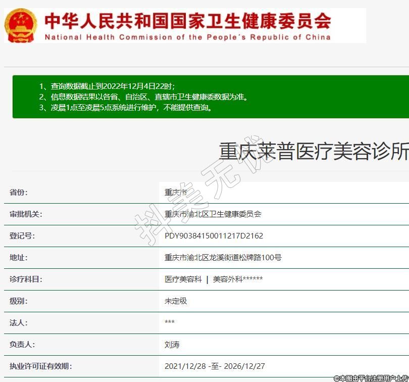 審批機(jī)關(guān):重慶市渝北區(qū)衛(wèi)生健康委員會