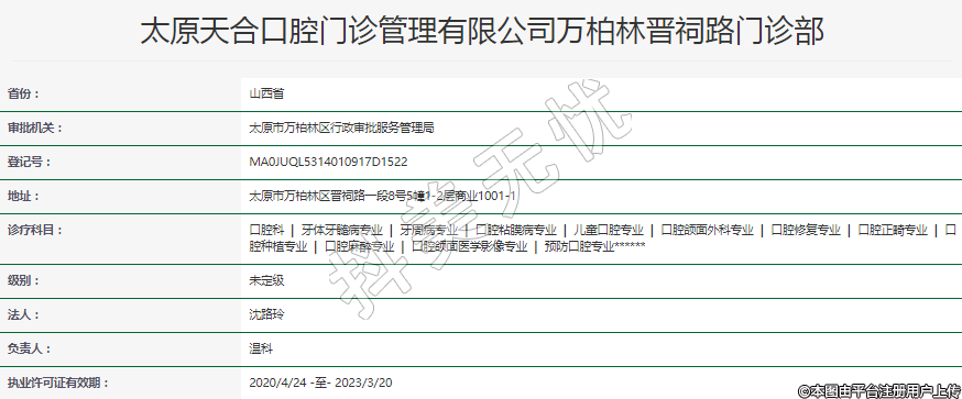 太原天合口腔門(mén)診管理有限公司萬(wàn)柏林晉祠路門(mén)診部