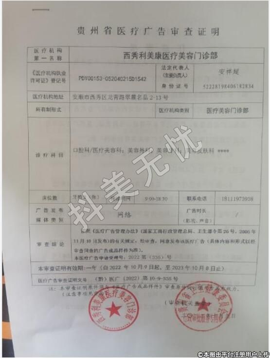 發(fā)證機關(guān):安順市西秀區(qū)衛(wèi)生健康局