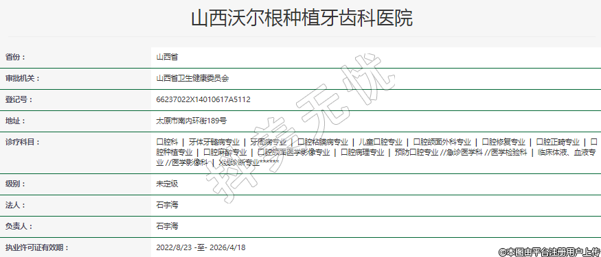 執(zhí)業(yè)許可證有效期:2022/8/23 -至- 2026/4/18
