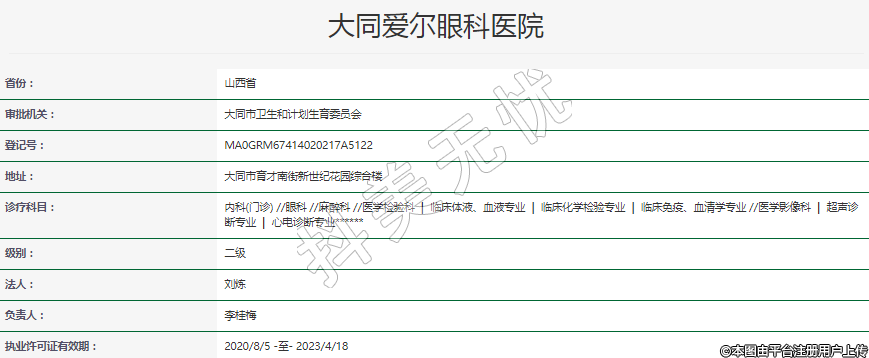 執(zhí)業(yè)許可證有效期:2020/8/5 -至- 2023/4/18
