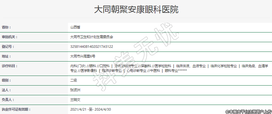 執(zhí)業(yè)許可證有效期:2021/4/21 -至- 2024/4/30