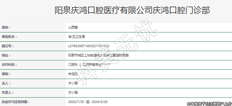 陽泉慶鴻口腔醫(yī)療有限公司慶鴻口腔門診部