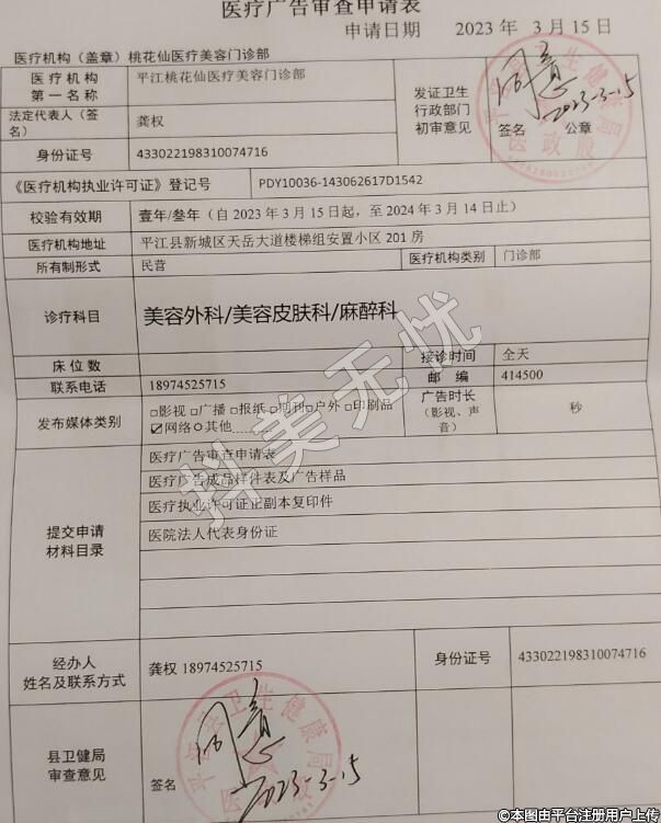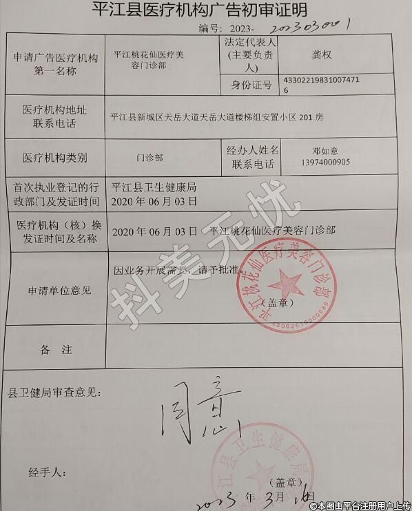 機構名稱:平江桃花仙醫(yī)療美容門診部
