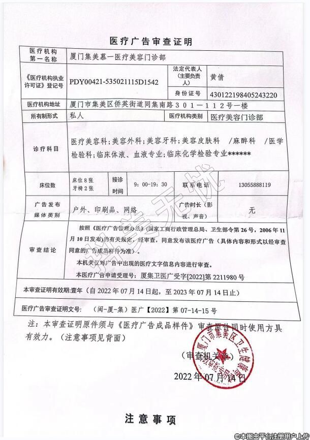 機(jī)構(gòu)名稱(chēng):廈門(mén)集美慕一醫(yī)療美容門(mén)診部