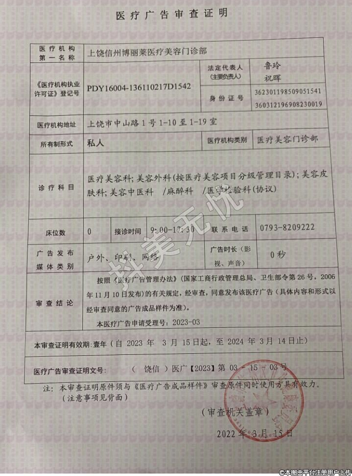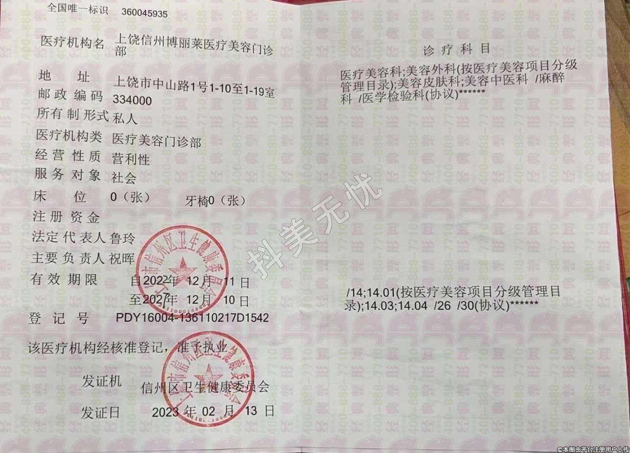 醫(yī)療機構(gòu)名:上饒信州博麗萊醫(yī)療美容門診部