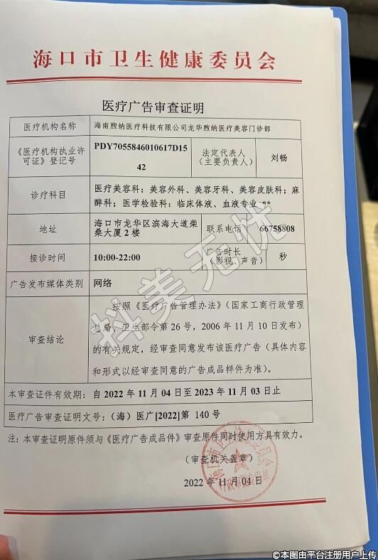 機構(gòu)名稱:海南煦納醫(yī)療科技有限公司龍華煦納醫(yī)療美容門診部